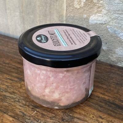 Zutaten: 80% Schweinefleisch, 20% Schweinefett, jodiertes Nitritpökelsalz (Kochsalz, Natriumnitrit), Gewürze und Geschmacksverstärker