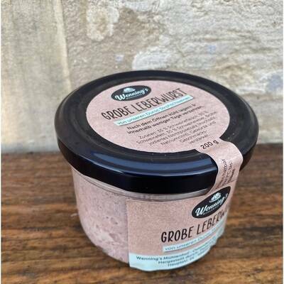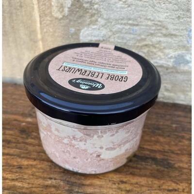 Zutaten: 35% Schweinefleisch, 30% Schweinefett, 30% Schweineleber, Brühe, jodiertes Nitritpökelsalz (Kochsalz, Natriumnitrit), Gewürze und Geschmacksverstärker